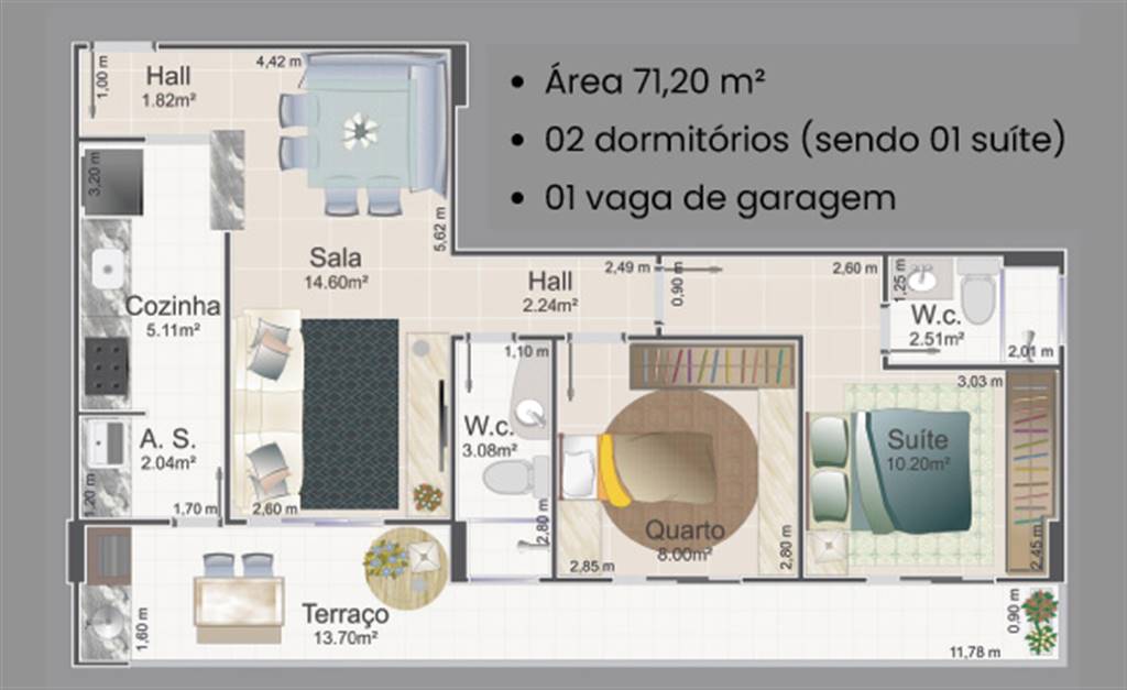 Área Útil71,20m²