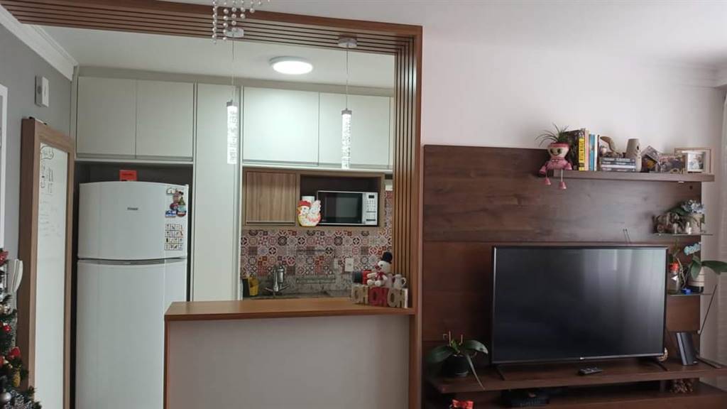 Imóvel com móveis planejados no quarto de solteiro, cozinha, (incluindo balcão com pendente e acabamento ripado) banheiro e lavanderia, piso vinílico na sala e dormitórios, porcelanato na cozinha, banheiro e lavanderia. Banheiro com ventilação natural e chuveiro a gás. Vaga de garagem coberta. Condomínio com quadra, playground, área pet, salão de festas integrado a churrasqueira (comporta até 70 pessoas), brinquedoteca, bicicletário, mini-mercado, piscina adulto e infantil, academia e feira livre uma vez por semana. Portaria 24h e sistema CFVT monitorando dentro e fora docondomínio.